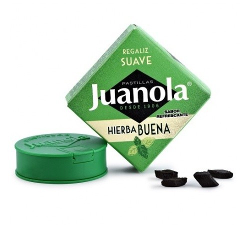 Juanola Pastillas Hierbabuena es un complemento alimenticio elaborado de manera tradicional desde 1906, que combina la esencia refrescante de la hierbabuena con el clásico toque de regaliz para cuidar tu garganta.