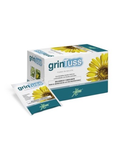 Descubre Grintuss Tisana 20 Bolsas, la infusión natural de Aboca diseñada específicamente para combatir la tos seca e irritativa de forma efectiva y segura. Formulada con ingredientes 100% naturales, esta tisana combina la dulzura de la miel, las propiedades expectorantes de la grindelia y el efecto calmante del llantén, ofreciendo un alivio integral para la garganta y las vías respiratorias.