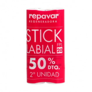 Protege tu piel con el pack duplo Repavar Reg Stick SPF20 50%. Hidratación intensa y protección solar media para pieles sensibles. Ideal para uso diario. ¡Pack ahorro 2x1!