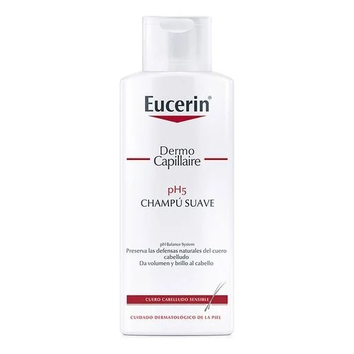 Champú suave Eucerin pH5 para cuero cabelludo sensible. Mantiene el pH natural 4.5-5.5, elimina impurezas, alivia irritaciones y aporta brillo saludable. Ideal para uso diario.