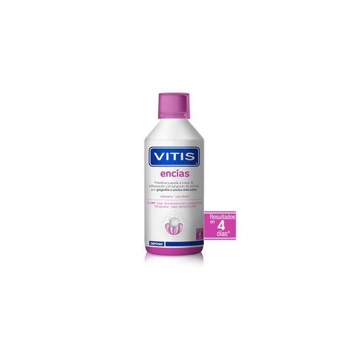 Enjuague bucal VITIS Encías previene y trata la gingivitis, reduce el sangrado e inflamación de encías, inhibe la placa bacteriana y revitaliza las encías para una higiene bucal óptima.