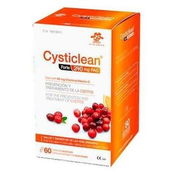 Cysticlean Forte es un complemento alimenticio de alta potencia diseñado para la salud urinaria. Cada cápsula contiene 240 mg de proantocianidinas (PAC) procedentes de extracto seco concentrado de arándano rojo americano (Vaccinium macrocarpon), combinado con 80 mg de vitamina C para un apoyo integral.