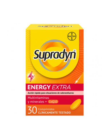 Supradyn Energy Extra 30 comprimidos ayuda a reducir el cansancio y mantener la energía diaria gracias a su combinación de vitaminas, minerales y coenzima Q10.