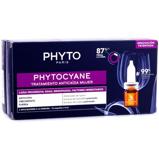 Modo de empleo: Aplica sobre cabello limpio y seco o aclarado. Usa una ampolla (5ml) por aplicación, sección por sección, masajeando suavemente. No enjuagar. Realiza una cura de 3 meses: 3 ampollas/semana el primer mes, luego 1/semana. Formato práctico de 12 ampollas x 5ml. Producto de PHYTO, registrado Invima NSOC20511-23CO. Perfecto para tratar caída progresiva del cabello en mujeres y mejorar la salud capilar.