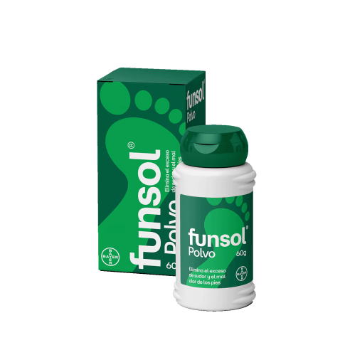 Funsol Polvo elimina el exceso de sudor y mal olor en pies y calzado. Mantiene tus pies secos, frescos y libres de olores durante todo el día. Ideal para sudoración excesiva.