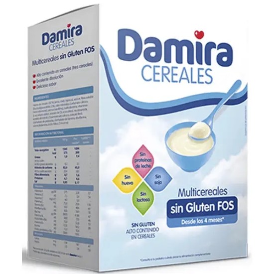 Damira Cereales Sin Gluten 600 g es una papilla multicereales especialmente formulada para bebés con intolerancia o alergia al gluten. Elaborada con cereales selectos como arroz, maíz y mijo, proporciona nutrientes esenciales para el crecimiento y desarrollo saludable del bebé.