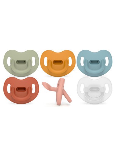Chupete de silicona médica ultra-suave para bebés de 0-6 meses. Tetina anatómica que imita el pezón materno, flexible, sin marcas en la cara e ideal para dormir. 0% BPA.