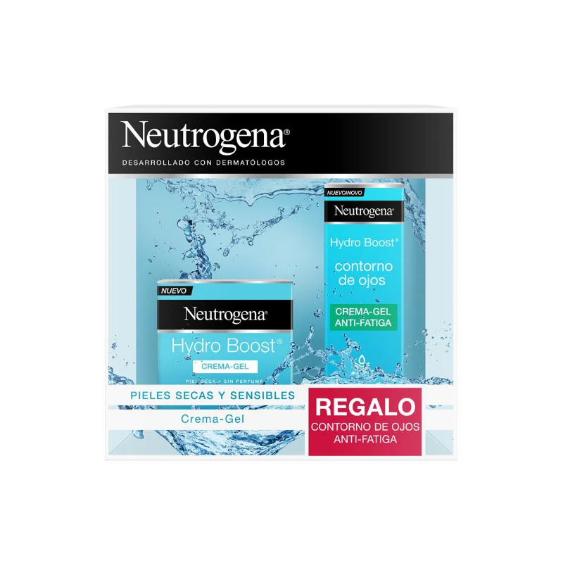 Pack duo Neutrogena Hydro Boost con gel-crema facial hidratante y contorno de ojos anti-fatiga. Hidratación intensa 24h con ácido hialurónico para piel radiante y fresca. Ideal para todo tipo de pieles