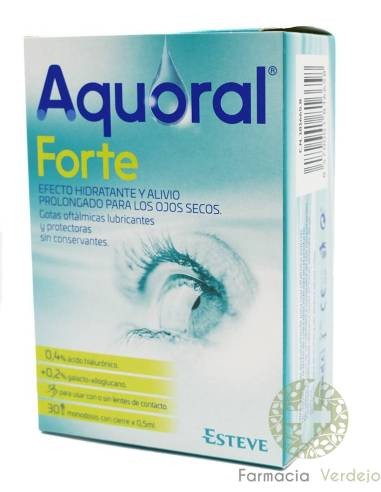 Aquoral Forte es una solución oftálmica lubricante formulada especialmente para proporcionar alivio prolongado y efecto calmante en casos de ojos secos.