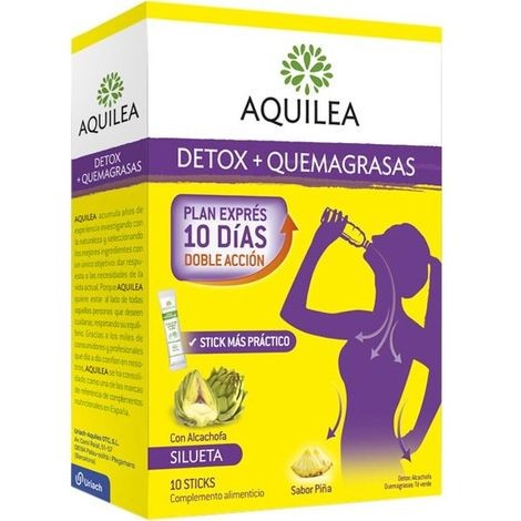Aquilea Detox 10 Sticks es un complemento alimenticio en formato sticks bebibles diseñado para apoyar la depuración natural del organismo en un plan exprés de 10 días. Ideal para quienes buscan detoxificar y potenciar la quema de grasas con una fórmula de doble acción.