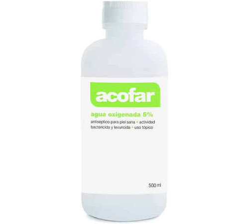 Agua oxigenada 5% Acofar de 500 ml. Antiséptico eficaz para desinfección de heridas, piel y superficies. Fórmula pura de laboratorio Acofarma, ideal para primeros auxilios en el hogar.