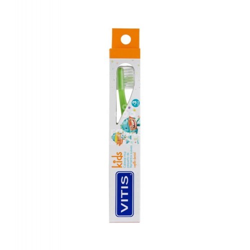 El Cepillo Dental Vitis Kids está especialmente diseñado para la higiene bucal diaria de niños mayores de 3 años, garantizando una limpieza eficaz sin dañar dientes ni encías sensibles.