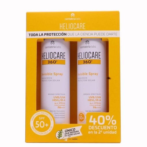 Protección solar avanzada Heliocare 360 Spray Invisible. Fórmula invisible, de amplio espectro contra UVA/UVB/IR/ luz visible. Pack duo 2x200 ml para máxima protección diaria. Ideal para toda la familia.