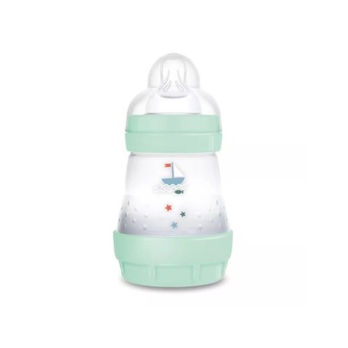 Biberón anticólicos MAM Easy Start 160 ml verde con tetina SkinSoft™ ultra suave. Reduce cólicos, previene ingesta de aire y simula el pecho materno para una alimentación cómoda.