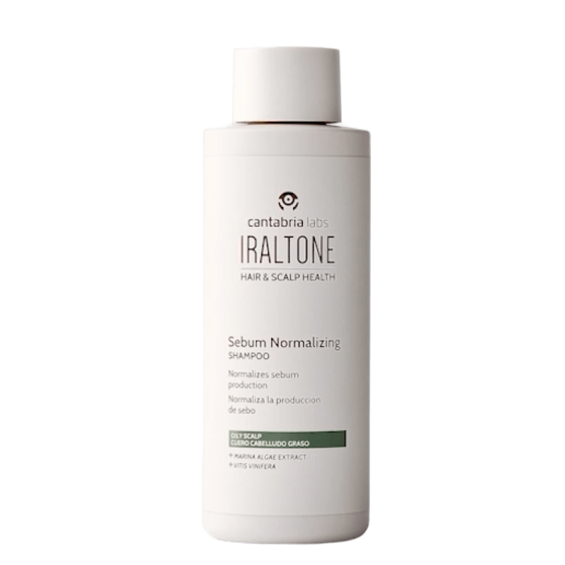 Champú seborregulador Iraltone que controla el exceso de grasa capilar. Acción antioxidante y purificante para un cabello suave, ligero y saludable. Ideal para cuero cabelludo graso con caspa.