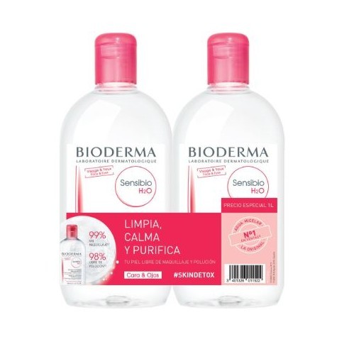 Bioderma Sensibio H2O es un agua micelar desmaquillante original diseñada especialmente para pieles sensibles. Este pack duplo contiene 2 botellas de 500ml cada una, proporcionando una solución completa para tu rutina diaria de limpieza facial. Características principales:Este producto limpia y desmaquilla tanto el rostro como la zona delicada de los ojos con un alto poder limpiador, aportando una sensación de frescor inmediata. La fórmula alivia y descongestiona la piel, respetando su fragilidad natural y manteniéndola equilibrada. Beneficios:Ideal para pieles sensibles, irritadas o reactivas. Su composición suave permite una limpieza profunda sin agredir la barrera cutánea. Proporciona confort inmediato y deja la piel fresca y revitalizada tras cada uso. Modo de uso: Aplicar sobre un algodón y pasar suavemente por rostro y ojos. No requiere enjuague. Confía en Bioderma, la marca dermatológica de referencia para el cuidado de pieles sensibles.