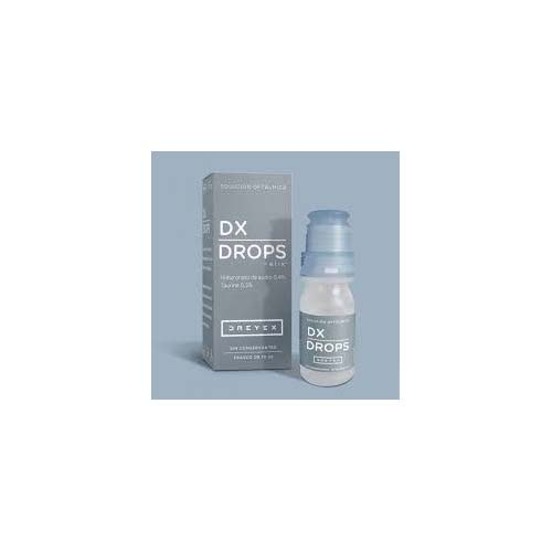 DX Drops: solución ocular hipotónica sin conservantes para aliviar el ojo seco. Con hialuronato de sodio (0,4%) y taurina (0,5%). Ideal para lentes de contacto. ¡Hidratación y protección ocular!