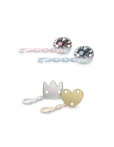 Disponible en diferentes modelos y acabados (plateado brillo, dorado mate, etc.). Combinable con chupetes, biberones y accesorios Suavinex de la misma colección.