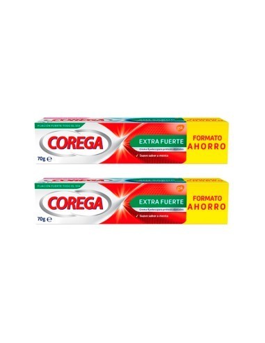 Crema fijadora para prótesis dentales en formato duplo 2 x 70 g, diseñada para proporcionar una sujeción extra fuerte y duradera durante todo el día. Ayuda a mantener la prótesis estable, evitando deslizamientos o incomodidades al hablar, comer o sonreír, incluso en prótesis bien ajustadas.