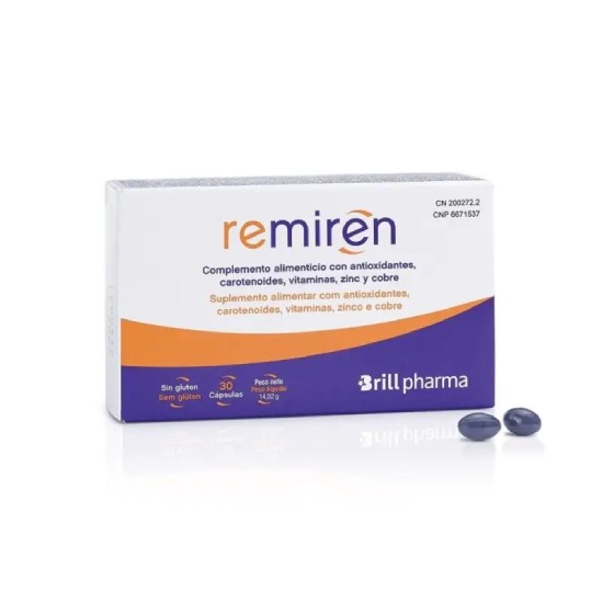 Remiren 30 Cápsulas es un complemento alimenticio premium de Brill Pharma, formulado específicamente para el cuidado ocular y la protección de la retina. Desarrollado con el asesoramiento de oftalmólogos especializados, este suplemento destaca por su extracto de azafrán puro estandarizado a 20 mg por cápsula, rico en carotenoides y antioxidantes.
