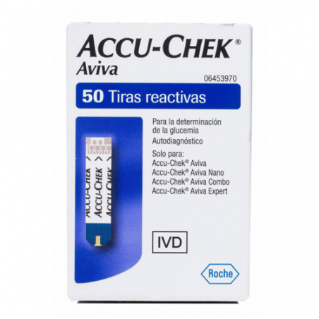 Tiras reactivas Accu-Chek Aviva para medidor de glucosa en sangre capilar. Precisas, fáciles de usar y compatibles con Aviva, Aviva Nano, Combo y Expert. Ideal para control diario de diabetes.