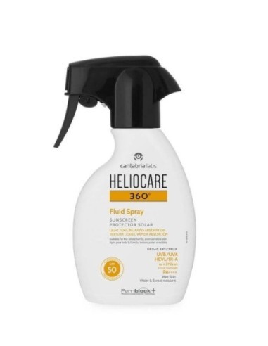 Descubre el Heliocare 360º Fluid Spray SPF50+, el protector solar en spray de alta eficacia diseñado para ofrecer una fotoinmunoprotección completa a toda la familia. Con factor de protección solar 50+, protege eficazmente contra rayos UVA, UVB e IR-A, previniendo el daño oxidativo y manteniendo la piel saludable.