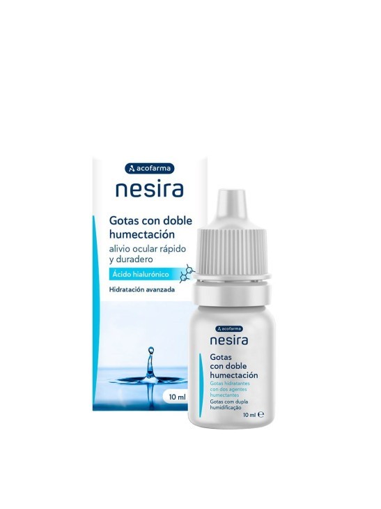 Descubre Acofarma Nesira Gotas con Doble Humectación, la solución ideal para el cuidado ocular diario. Este colirio oftálmico de 10 ml, con EAN 8470002024533, está formulado con ácido hialurónico que proporciona una doble acción humectante, ofreciendo hidratación intensa y prolongada para ojos secos, irritados o fatigados.