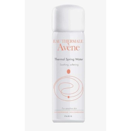 Agua termal Avène en spray de 50 ml. Ideal para pieles sensibles, hipersensibles y alérgicas. Calma, desensibiliza y refresca la piel al instante.