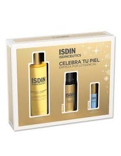 Isdinceutics Essential Cleansing es un aceite limpiador facial de ISDIN con textura oil-to-milk, diseñado para una limpieza profunda y efectiva del rostro y ojos, eliminando maquillaje waterproof, impurezas, exceso de sebo y restos de protector solar.