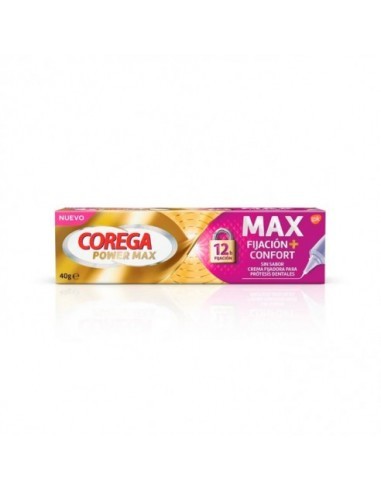 Corega Max Confort 40g es la crema fijadora premium para prótesis dentales que proporciona máxima fijación y confort durante hasta 12 horas, ideal para un día completo de seguridad y bienestar bucal.