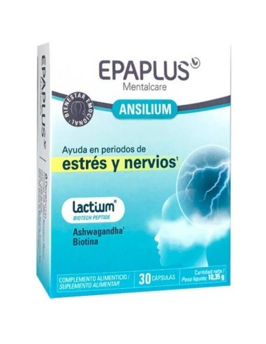 Epaplus Mentalcare Ansilium es un complemento alimenticio diseñado para ayudar en periodos de estrés y nervios, promoviendo el bienestar mental y emocional. Formulado con ingredientes naturales de alta calidad, como Lactium® (proteína bioactiva extraída de la leche), ashwagandha y biotina, este producto apoya el equilibrio emocional en situaciones de tensión.