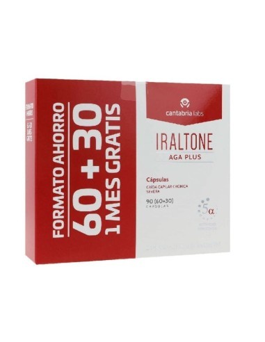 Iraltone AGA Plus es un complemento alimenticio específicamente formulado para tratar la caída capilar crónica severa y la alopecia androgénica (AGA) en hombres y mujeres. Actúa como apoyo nutricional en casos de cabello débil, pérdida de densidad capilar importante y debilitamiento hormonal.