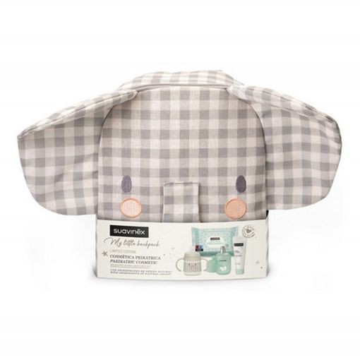 Mochila regalo bebé con crema pañal 75ml, colonia 100ml, toallitas 25ud y biberón luminoso. Cuidado completo piel sensible. Ideal vuelta guardería. Edición limitada elefante.