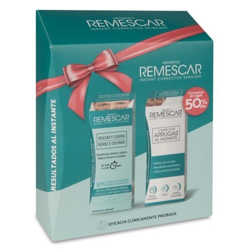 Estuche duo Remescar contra bolsas y ojeras. Reduce hinchazón, arrugas y pigmentación en solo 4 semanas. Fórmula clínicamente probada para mirada rejuvenecida.