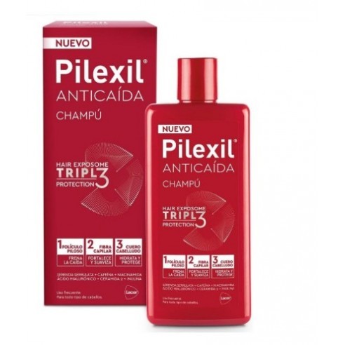 El Champú Pilexil Anticaída Triple Protección 275ml es un tratamiento intensivo diseñado para cabello debilitado con caída acentuada. Su fórmula exclusiva actúa en tres niveles: folículo piloso, fibra capilar y cuero cabelludo, frenando la caída, estimulando el crecimiento y aportando nutrición profunda.