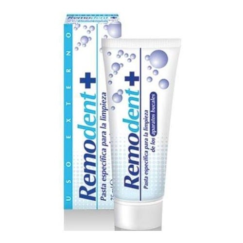 Remodent Plus 75 ml es la solución profesional para la limpieza mecánica diaria de aparatos bucales removibles, como dentaduras totales y parciales, aparatos de ortodoncia, y protectores bucales nocturnos y diurnos.
