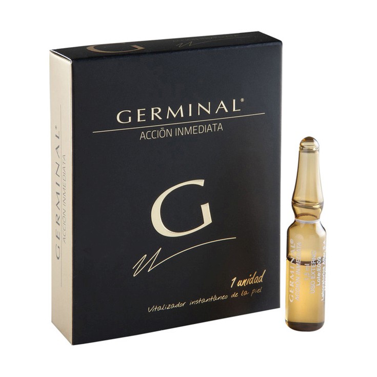 La Ampolla Acción Inmediata Germinal es un tratamiento de belleza intensivo que ofrece un efecto lifting inmediato y prolongado, ideal para combatir los signos de fatiga y estrés en la piel. Formulada para todo tipo de piel y dirigida principalmente a mujeres, cada ampolla de 1,5 ml contiene una potente mezcla de ingredientes activos que actúan rápidamente para rejuvenecer el rostro.