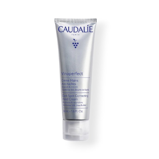 Crema antimanchas Vinoperfect de Caudalie que difumina manchas oscuras, nutre e hidrata las manos sin efecto graso. Textura fina y untuosa para un cuidado intensivo diario.