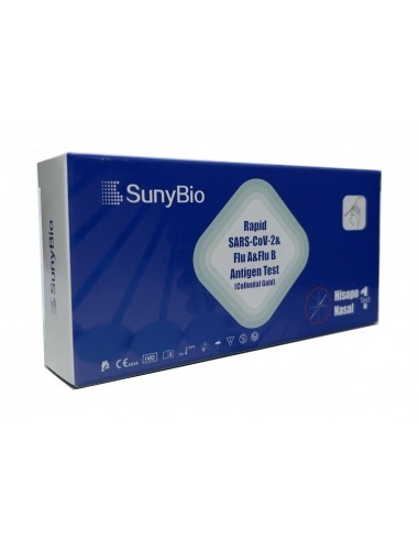 Test nasal rápido para detectar COVID-19 y Gripe A/B en casa. Resultados fiables en minutos, uso sencillo y preciso. Ideal para diagnóstico precoz y protección familiar.