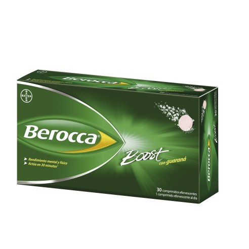 Berocca Boost es un complemento alimenticio efervescente con vitaminas del grupo B, vitamina C, minerales esenciales y extracto de guaraná natural, diseñado para optimizar el rendimiento intelectual y reducir la fatiga mental.