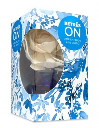 Ambientador decorativo con fragancia “Aire Limpio” diseñado para perfumar el hogar de forma continua y prolongada. Su sistema de difusión gradual mediante flor aromática permite liberar la fragancia de manera constante durante aproximadamente 4 semanas, creando un ambiente fresco, natural y agradable en cualquier estancia.