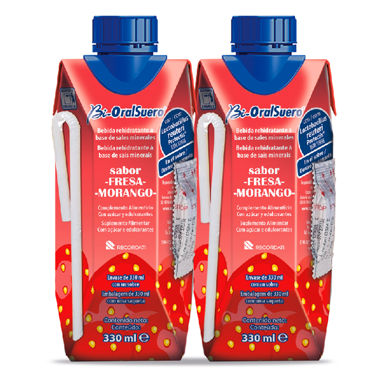 Bioralsuero Frutas es una solución de rehidratación oral especialmente diseñada para reponer los electrolitos perdidos durante las etapas de diarrea o vómitos. Esta bebida con sales de rehidratación oral y probiótico Lactobacillus Reuteri Protectis ayuda a mantener el equilibrio de los fluidos corporales, mejorando el bienestar físico y la salud del individuo.